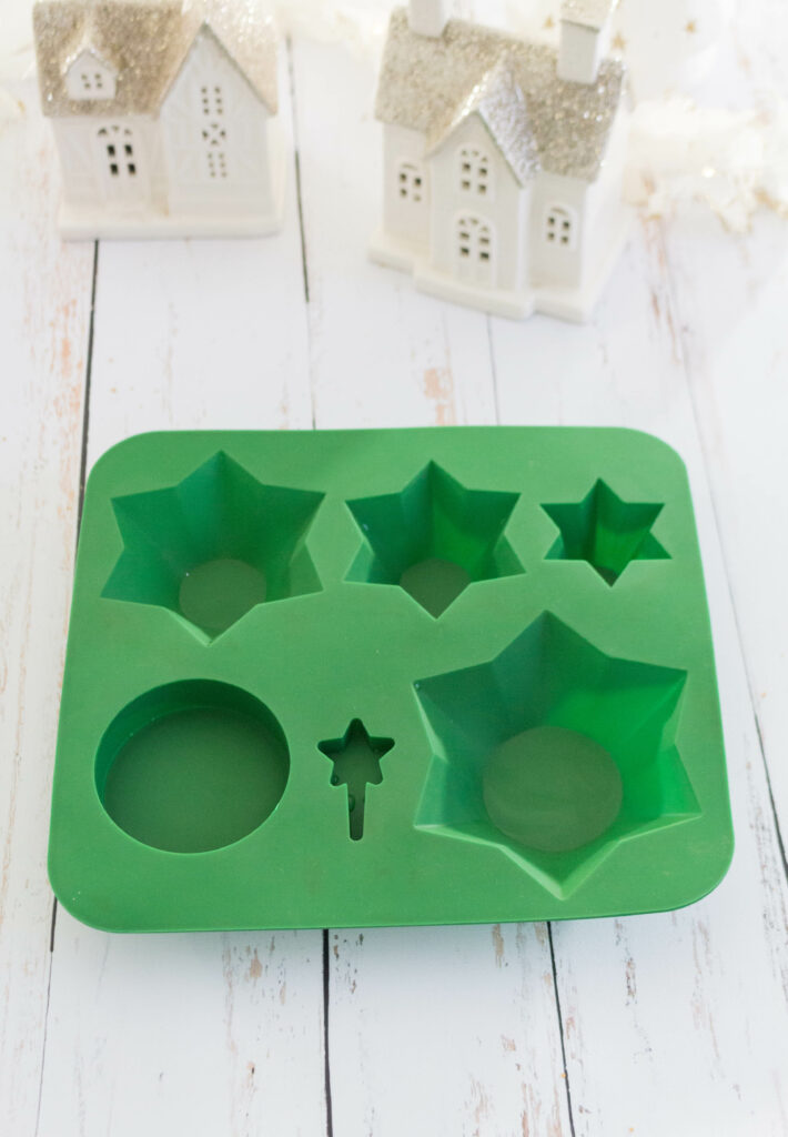 J’ai étudié la question et choisi un gâteau au chocolat moelleux mais assez compact, en adaptant la cuisson selon la taille des différents moules. J’ai procédé par étapes, en cuisant deux gâteaux à la fois. Pour assembler le tout, j’ai préparé une petite ganache au chocolat. Au sommet, j’ai ajouté une étoile en chocolat réalisée avec le moule, et comme il me restait un peu de bombe alimentaire dorée, j’en ai profité pour la colorer. Un léger glaçage royal pour l’effet « neige »… et le tour était joué !